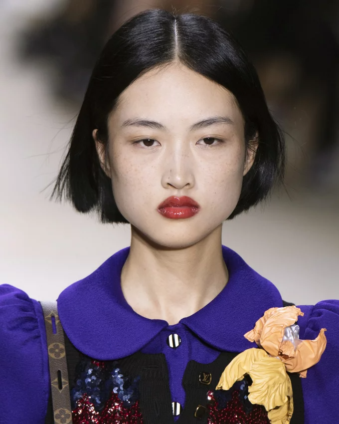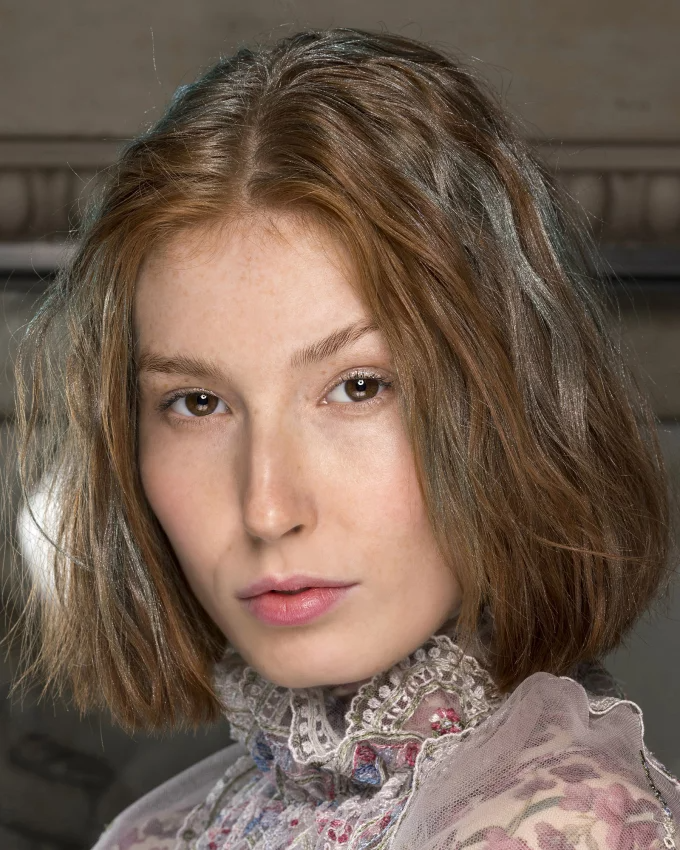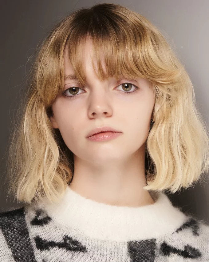 قصة شعر كاريه بأسلوب مموج ناعم مع غرة مموجة