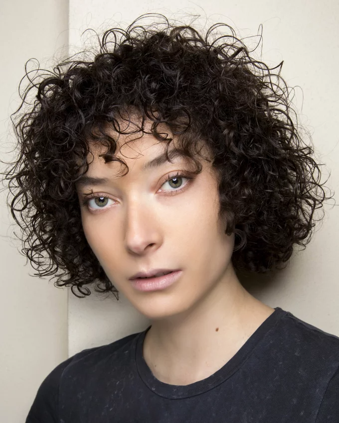 قصة شعر كاريه قصير مموجة بشكل عريض مع غرة أمامية