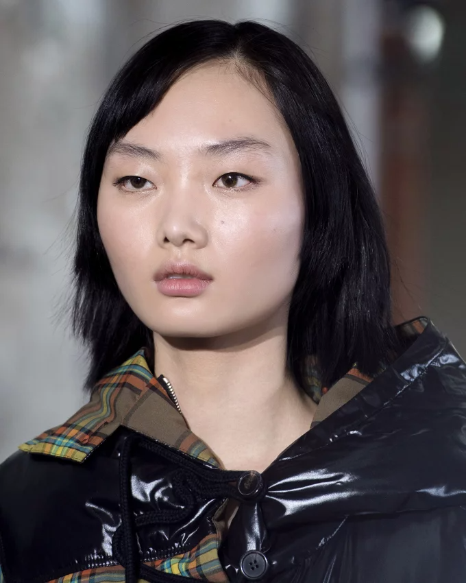 قصة شعر كاريه طويل عند الكتف مع غرة مفروقة في المنتصف