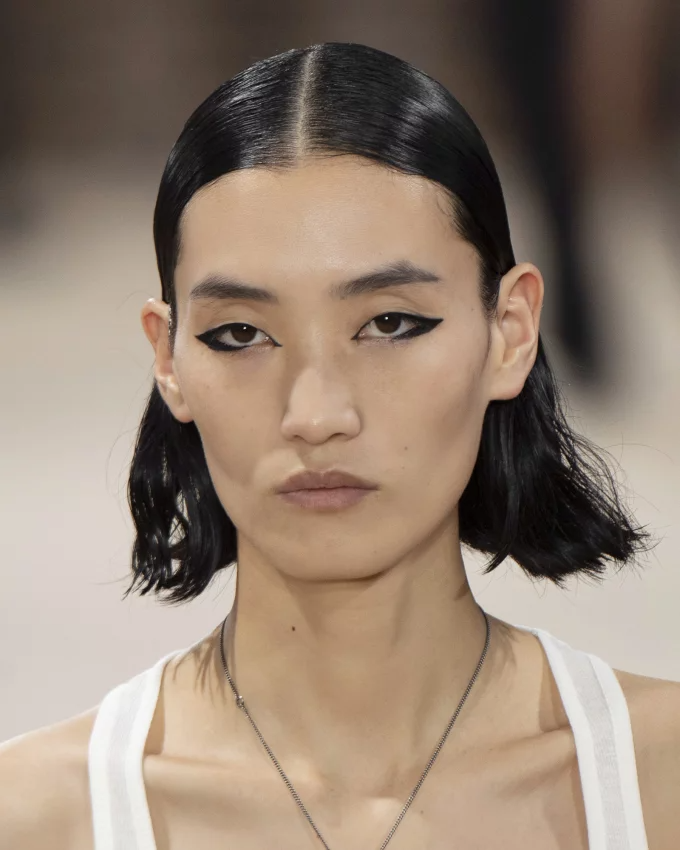 قصة شعر كاريه قصير مع تسريحة الشعر المبلل