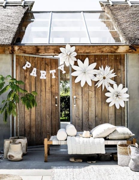 - إكسسوارات الزينة: يمكنك اعتماد الإكسسوارات الجاهزة التي تأتي بأشكال مرحة ومتنوعة توضع على الأرض بطرق جذابة أو الإكسسوارات المعلقة التي يتم وضعها عند المدخل. أما لإضافة لمسة مميزة بين الجلسات الخارجية، tيمكنك سيدتي اعتماد الفوانيس المضيئة، الشموع الفواحة فيما ننصحك بنثر بتلات الورد في النوافير وأحواض السباحة.