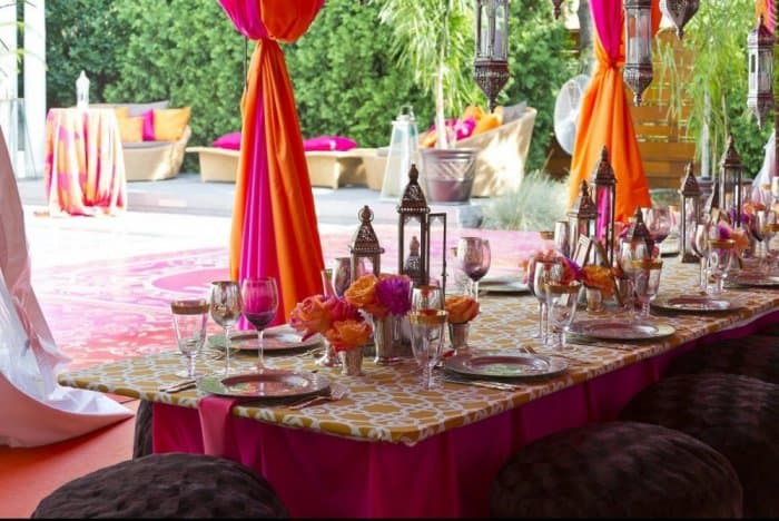 - موائد الطعام: يمكنك تزيين موائد الطعام في الحديقة بديكورات مميزة شرط أن تكون في نفس إطار المناسبة التي ستقيمينها. جربي أسلوب الجلسات العربية المريحة لأمسية مسائية دافئة رفقة الأصدقاء، أو وضع مجموعة من الطاولات الصغيرة أو طاولة كبيرة تجمع كل الضيوف للمناسبات الرسمية.