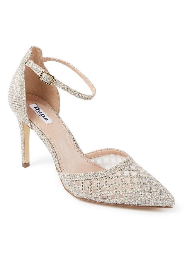 حذاء كعب عالي مع شبكة مزينة بالترتر الفضي وسوار قدم من DUNE LONDON