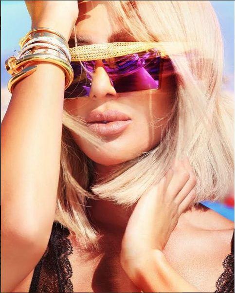 نظارات بعدسات بنفسجية نيون عاكسة مع إطار ذهبي من وحي مايا دياب