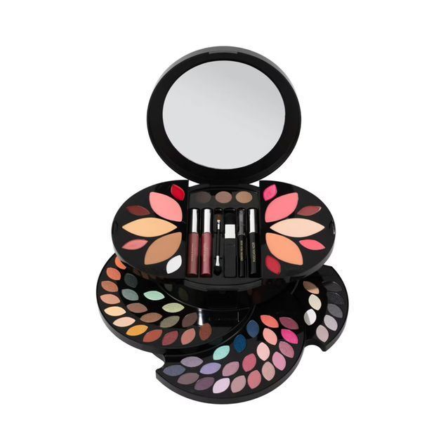 باليت متكاملة من ظلال العيون تضمن درجات جذابة لألوان عديدة مثل الوردي، البنفسجي، البني والأزرق. إضافة إلى بودرة خدود وملمع شفاه.