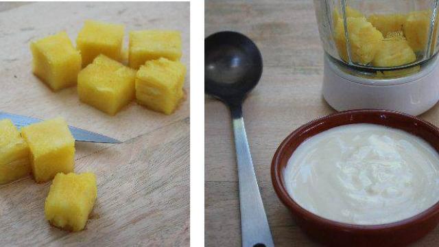 اضربي 4 شرائح من الأناناس الطازج مع ملعقتين كبيرتين من حليب جوز الهند الطبيعي في الخلاط الكهربائي حتى تحصلي على خليط ناعم، وزعيه على الوجه واتركيه حتى يجف تماما قبل شطفه بالماء الفاتر ويليه البارد.