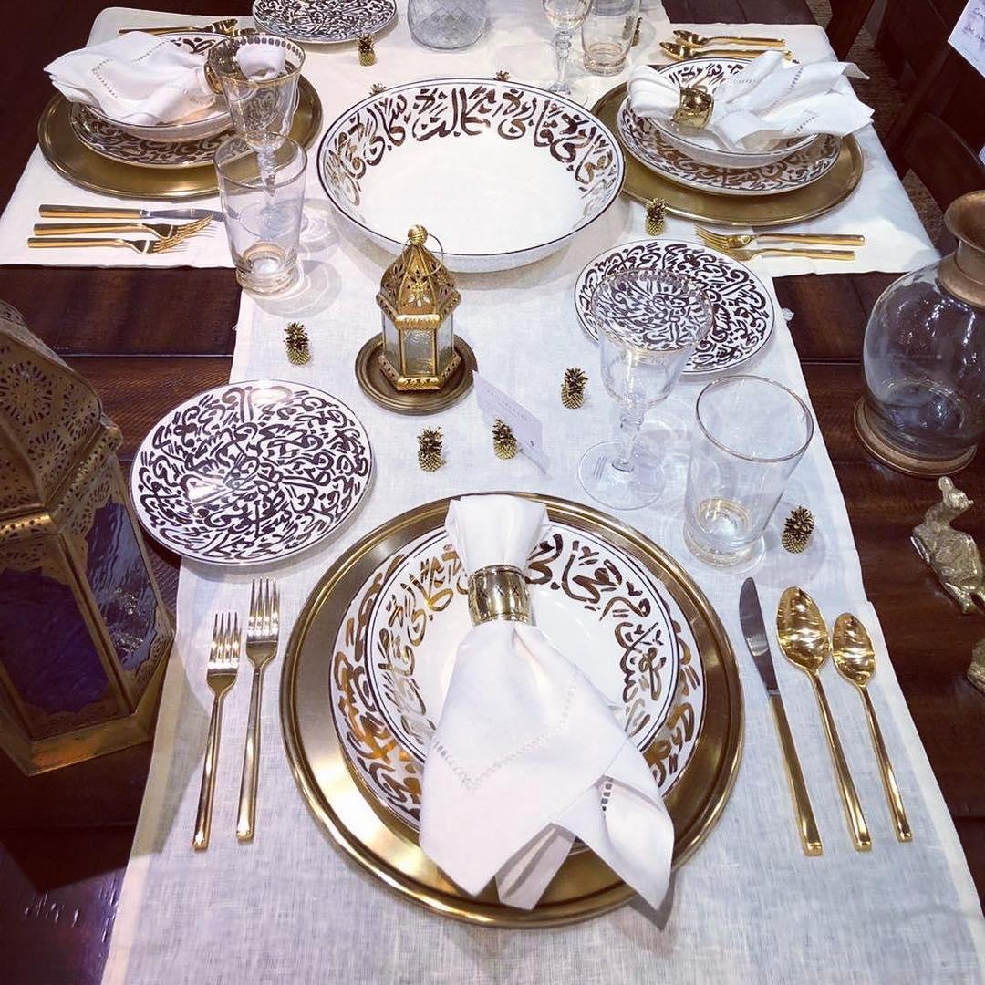 قومي بتنسيق مجموعة من الأواني والأكواب المزينة بزخرفات وعبارات شرقية لتحصلي على سفرة رمضانية بامتياز