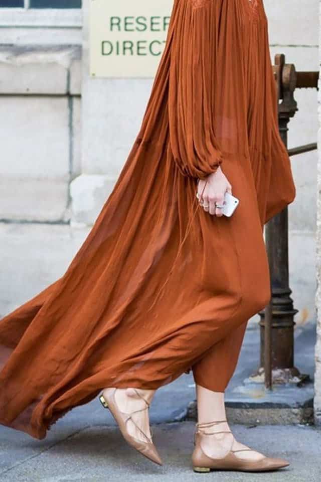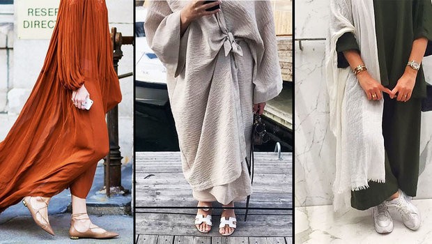العبايات الفستان: لا يقتصر شكل العباية على التصاميم الكلاسيكية القديمة، بل أصبحت تتوفر بتصاميم حديثة وأنيقة مثل العباية الفستان التي تأتي مصنوعة من القطن أو الليكرا وبألوان سادة خالية من النقوش. ننصحك بارتداء الصنادل المسطحة أو المفتوحة مع بعض الإكسسوارات البسيطة التي تمنحك إطلالة مميزة وغير متكلفة.