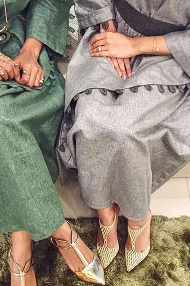 العبايات الكاجوال: إذا كنت سيدتي تفضلين العباية الكاجوال فننصحك بارتداء الأحذية المسطحة أو المدببة، حيث تتوفر بألوان وتصاميم أنيقة تجعلها تتماشى مع جميع ألوان العبايات حتى لا تضعي الوقت في البحث عن اللون المناسب.