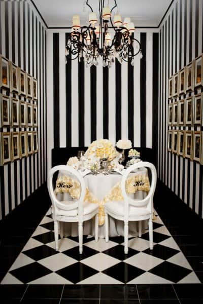 - الأسود والأبيض: هو الشكل التقليدي المعروف للطبعة المقلمة، ويضفي رونق مبتكر وأنيق على المساحة في حال تم استخدام إكسسوارات باللون الأحمر الذي يشكل لمسة فنية منسجمة مع اللونين السابقين.