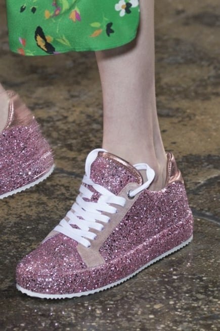 حذاء رياضي وردي بلمسات براقة بتصميم السنيكرز يضمن الأناقة والراحة للسيدة العصرية.