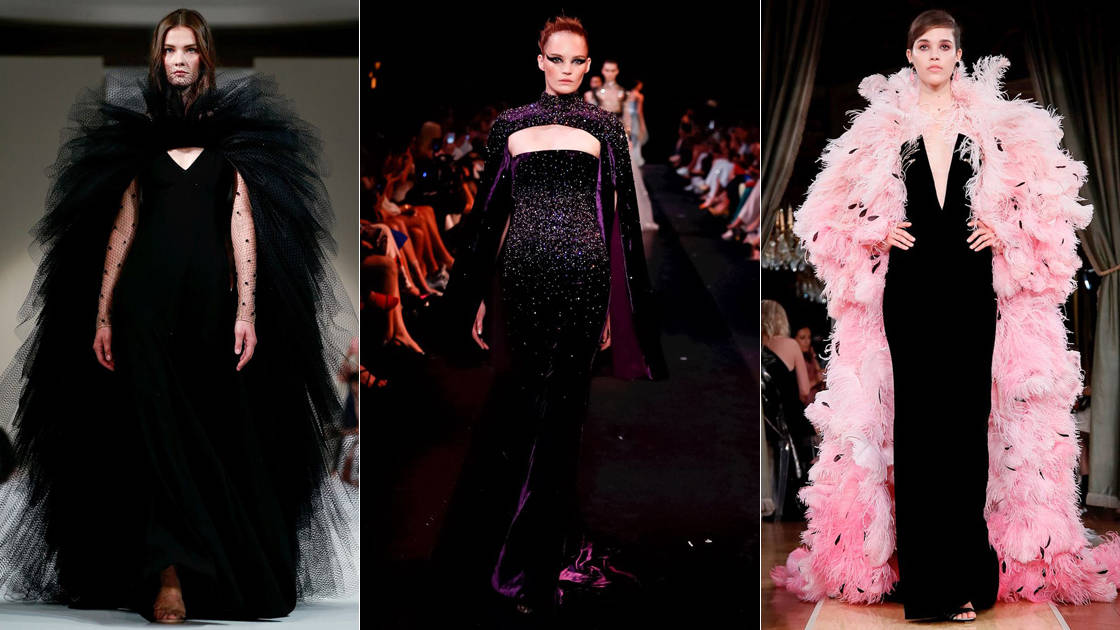 وارتكز تصميم اشي ستيديو Ashi studio على الكابات الموصولة بفساتين السهرة مع زخارف ناعمة وأنيقة في حين فضلت ماركات أخرى اللجوء إلى عدم التطريز حتى تكون أكثر بساطة لكن مميزة مثل تصاميم Krikor Jabotian .