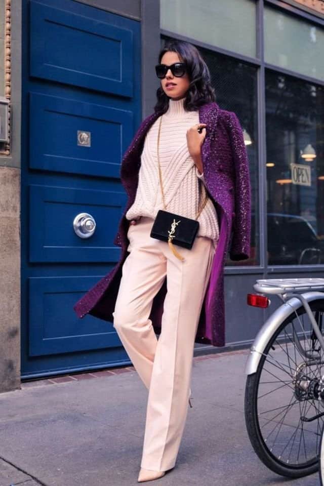 للتمتع بإطلالة مميزة، يمكنك سيدتي تنسيق درجات مختلفة من نفس اللون مع المعطف. لاتترددي في تجربة هذا اللوك الأنيق.
