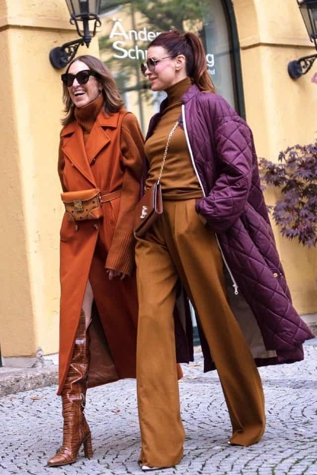 اختارت أغلب مدونات الموضة الظهور بالملابس الملونة مع المعاطف الزاهية، حيث يمكنك تنسيق المعاطف الخضراء مع البنطلون الأحمر، أو البالطو البرتقالي مع البلوزة الفوشيا.