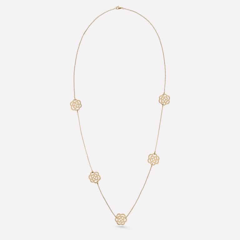 سوتوار بسيط وأنيق من علامة شانيل مصنوع من الذهب الأصفر ومزين بزهرة الكاميليا