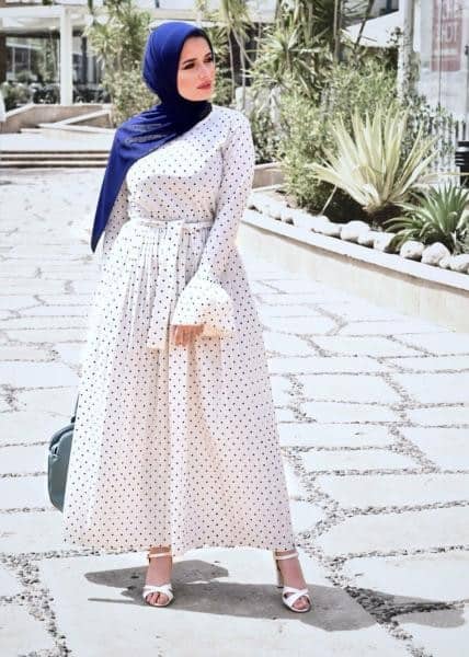 - إذا كنت صاحبة قامة قصيرة، اختاري الفساتين المطبعة بنقاط البولكا على أن تكون بطول يغطي الكاحل.