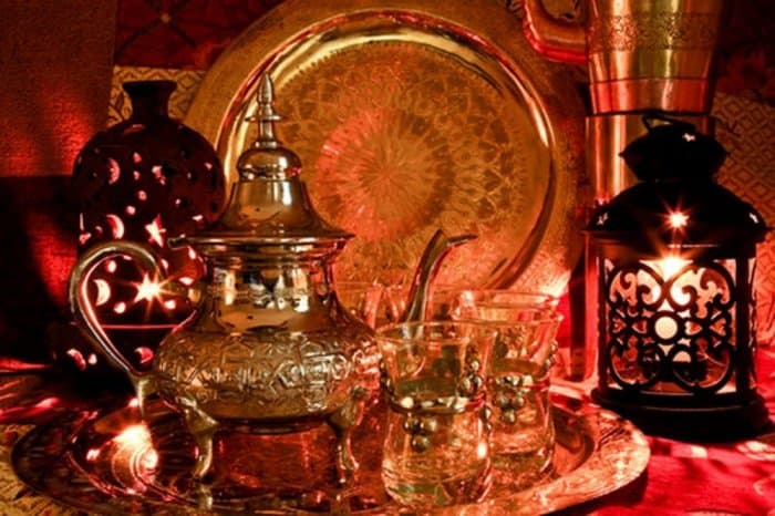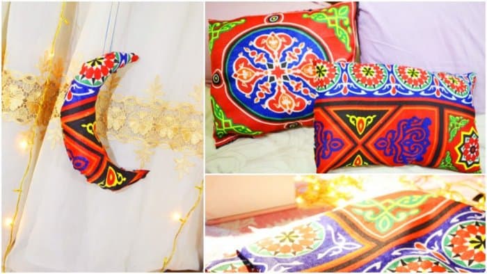 - نقشات رمضانية: يمكنك سيدتي اعتماد أقمشة تحمل نقشات على شكل هلال رمضان لغرفة المعيشة أو الطاولة والكراسي. كما يمكنك استخدام الأقمشة الخيامية مع وضع صينية من النحاس تحمل فناجين القهوة والتمر للضيافة.