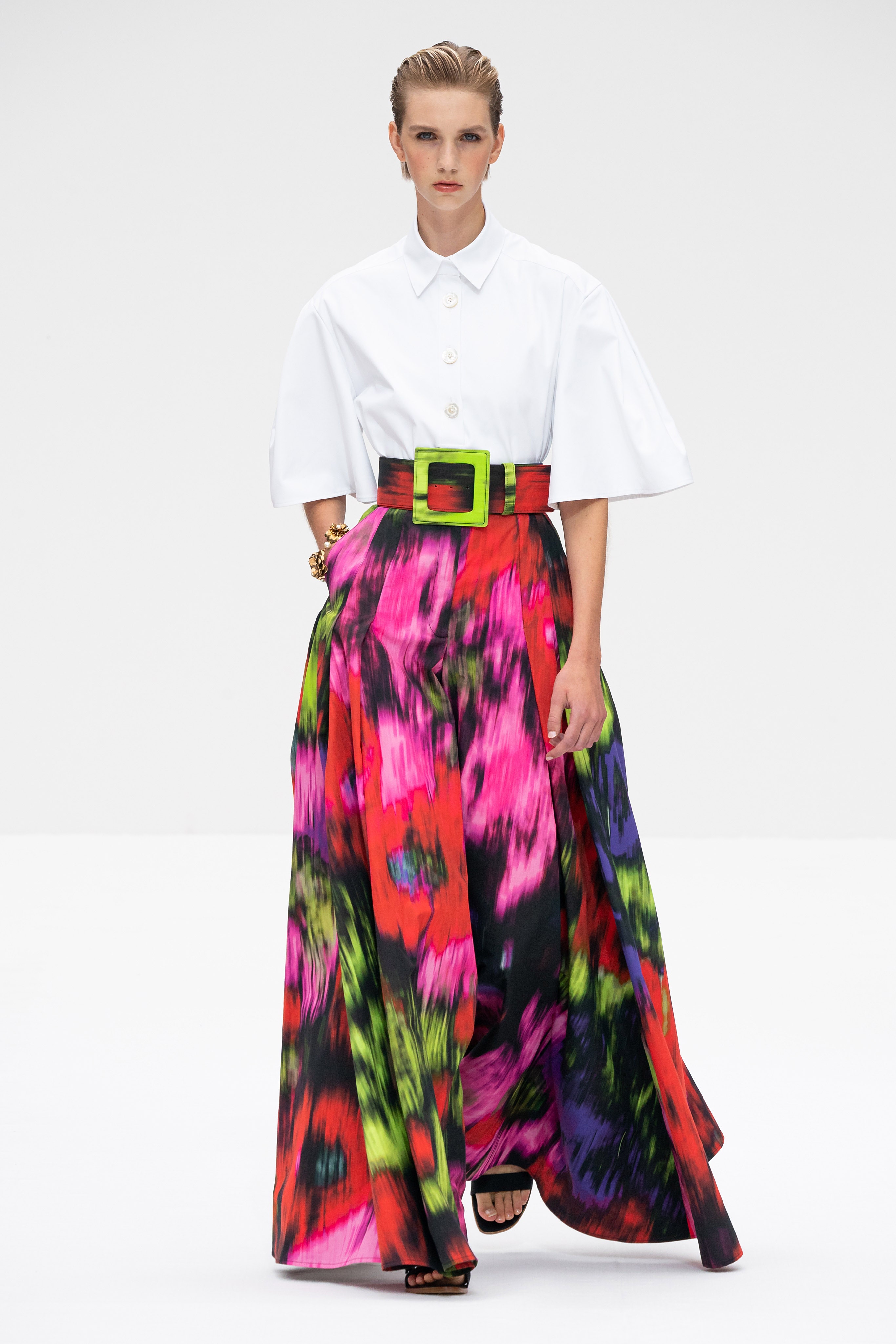 التنورة الماكسي المعرقة مع القميص الأبيض: إطلالة بسيطة ولا تتطلب منك الوقت أو الجهد، إذا كنت تملكين تنورة ماكسي معرقة بالورود فنسقيها بكل بساطة مع قميص أبيض كلاسيكي وصندل أو حذاء حسب الذوق.