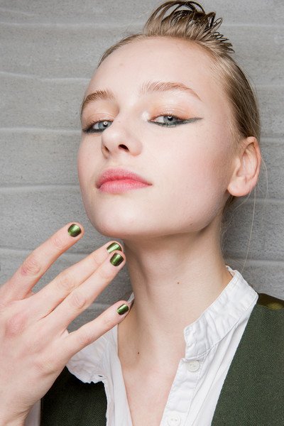 إذا كانت أظافرك قصيرة ومربعة فأنت بحاجة إلى تطبيق اللون الأخضر أو الأسود اللماع لمنحها الإطلالة المطلوبة. ومن الصيحات البارزة في الموسم القادم الألوان الكحلية والزيتية اللامعة مثل أسلوب Marco De Vincenzo .