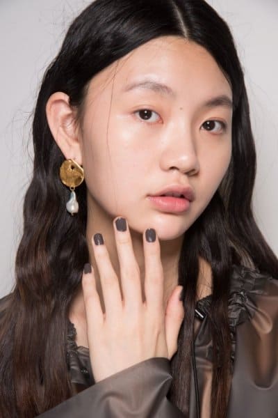 في الموسم الشتوي ل2019 ستجدين طلاء الأظافر بتدرجات اللون البني اللامع خاصة عند اختيار الألوان الفاتحة حتى تكون ملفتة للنظر أكثر مثل عارضات اودن شوا Eudon choi. حتى تكوني جريئة يمكنك اختيار تدرجات اللون البني الداكنة واللماعة وتتمتعي بأنامل ساحرة ومميزة.