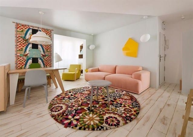 - إذا أردت المزج بين الطابع العصري والطابع الشرقي القديم، يمكنك اختيار سجاد مفعم بالألوان مع خلفية جدران باللون الأبيض.
