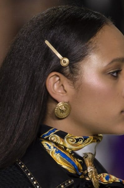 يمكنك التألق بالدبابيس بألوانها المعدنية وخاصة تلك القطع باللون الذهبي الفاخر التي يمكنك اعتمادها للسهرات والمناسبات الخاصة ووضعها بطريقة متوازية على أسلوب علامة Versace. أما إن كنت تفضلين الإطلالات اليومية البسيطة، فننصحك بالدبابيس الربيعية الملونة مع الباند الرفيع على طريقة Ayna Hindmarch.