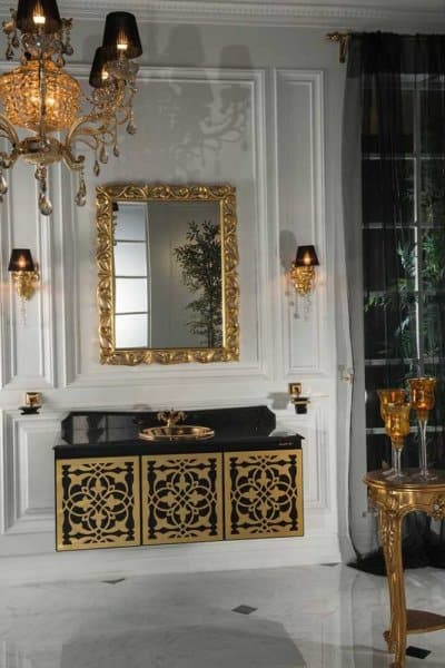 - المغاسل: يمكنك إضفاء لمسة أناقة واضحة على الحمام من خلال اختيار موديلات مغاسل مزينة باللون الذهبي الفاخر.