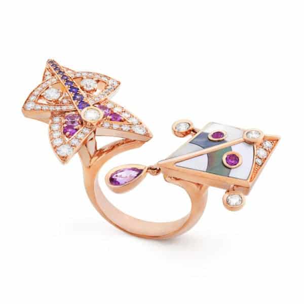 أطلقت العديد من دور المجوهرات العالمية المعروفة تشكيلة خواتم مزدوجة لهذا الموسم، وتراوحت التصاميم بين الناعم وبين المرصع بأحجار ماسية براقة تخطف الأبصار.