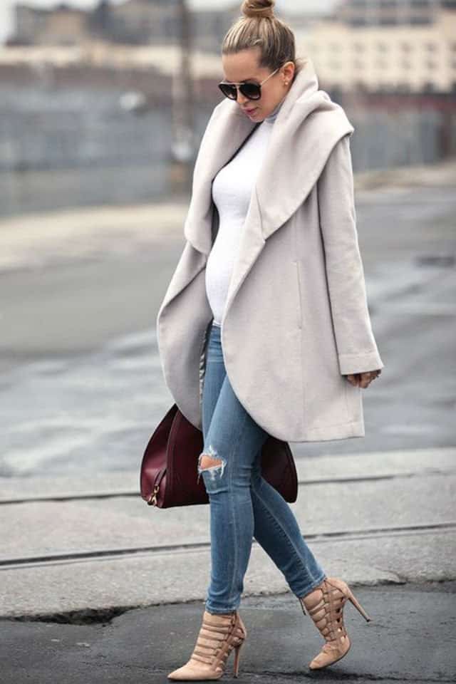 أما بالنسبة للمعاطف فيجب تركها مفتوحة إذا كانت بطنك بارزة للتمتع بإطلالة أنيقة ومميزة. ويمكنك تنسيقه مع بنطلون جينز وتي شيرت فضفاض حتى لايضغط على بطنك.
