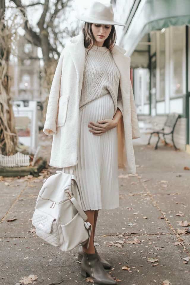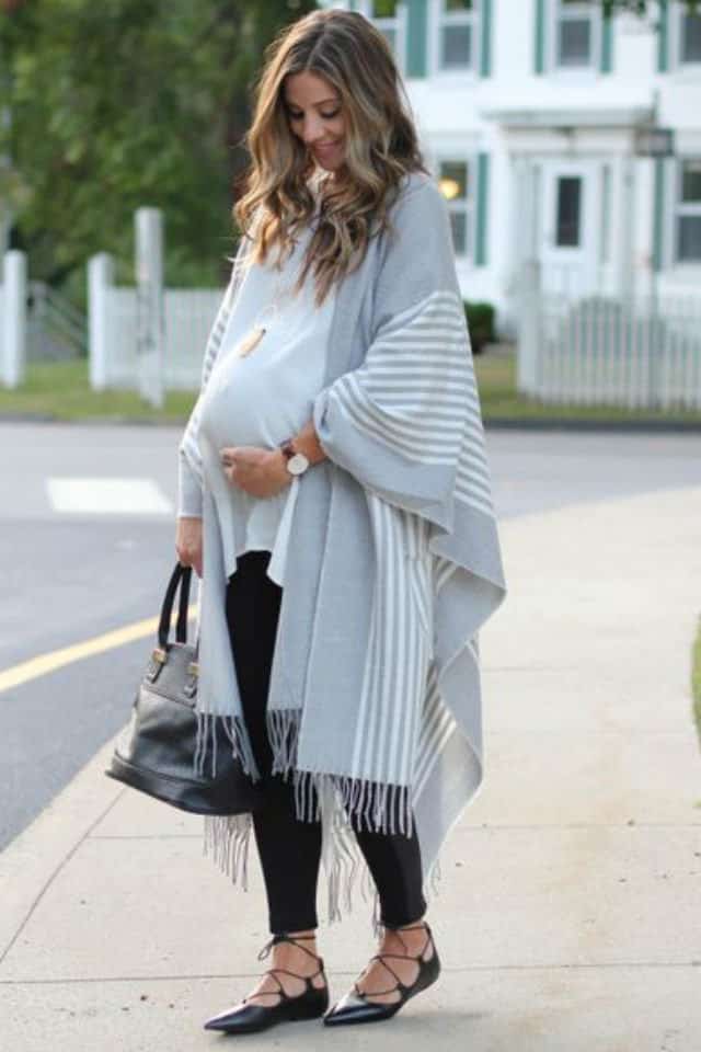 يزداد الوزن وتظهر البطن بشكل بارز مع بداية الشهر السابع، لذلك يجب أن تميلي إلى الملابس الفضفاضة والمطاطية. لإطلالة عملية أنيقة عليك اختيار الكاب للشعور بالدفئ في الأجواء الباردة.