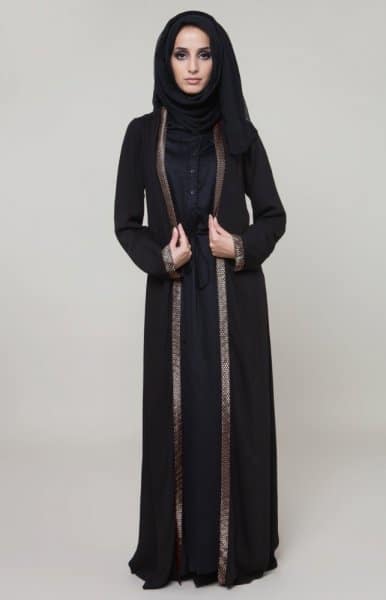 أما إذا كنت تفضلين الأسلوب الشبابي، فجربي العبايات السوداء التي تأتي بأكمام واسعة ومزينة بقماش الدانتيل الفاخر بلونه الذهبي الجذاب أو العباية البسيطة التي تم تزينها بالنقوش الذهبية بأسلوب احترافي عصري.