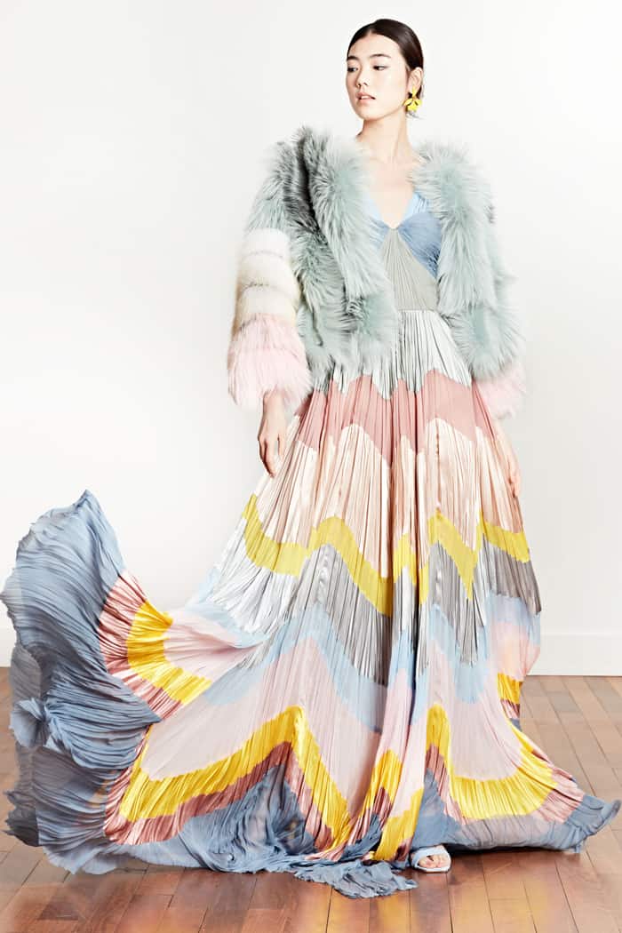 مزجت العديد من دور الأزياء الشهيرة أكثر من لون باستيل في فستان واحد مثل تصاميم Dennis Basso و Pamella Roland لإطلالة ناعمة ومشرقة.