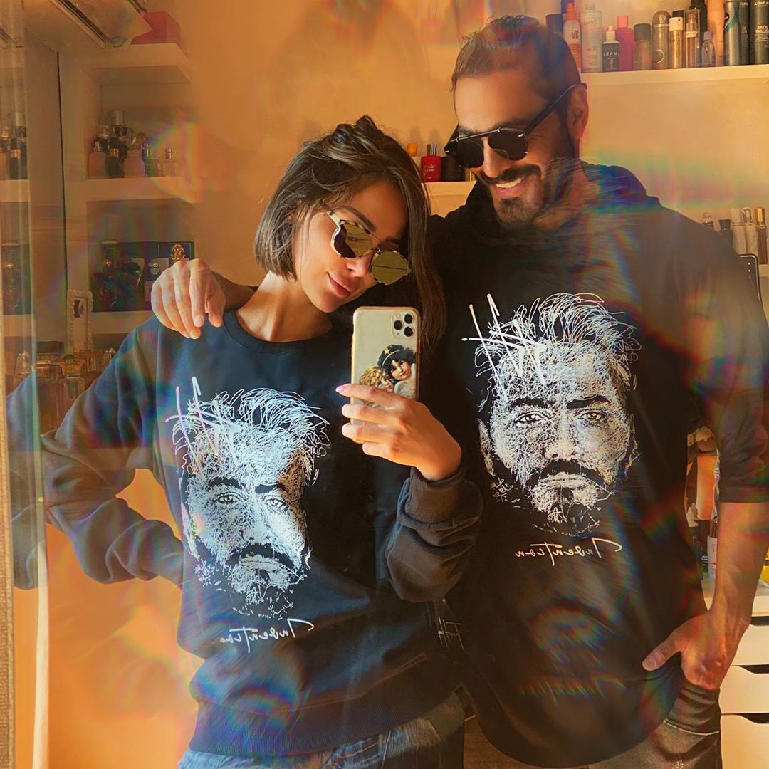 احتفل النجم المصري تامر حسني بعيد ميلاده الـ44 وسط أجواء من الرومانسية، حيث نشرت زوجته بسمة بوسيل صورة لهما وهما يرتديان تي شيرت الثنائي ويحمل صورة تامر حسني مع كتابة تعليق خاص”كل سنة وانت حبيبي” فيما رد عليها تامر “كل يوم وانتي حبيبتي وروحي وعمري”.