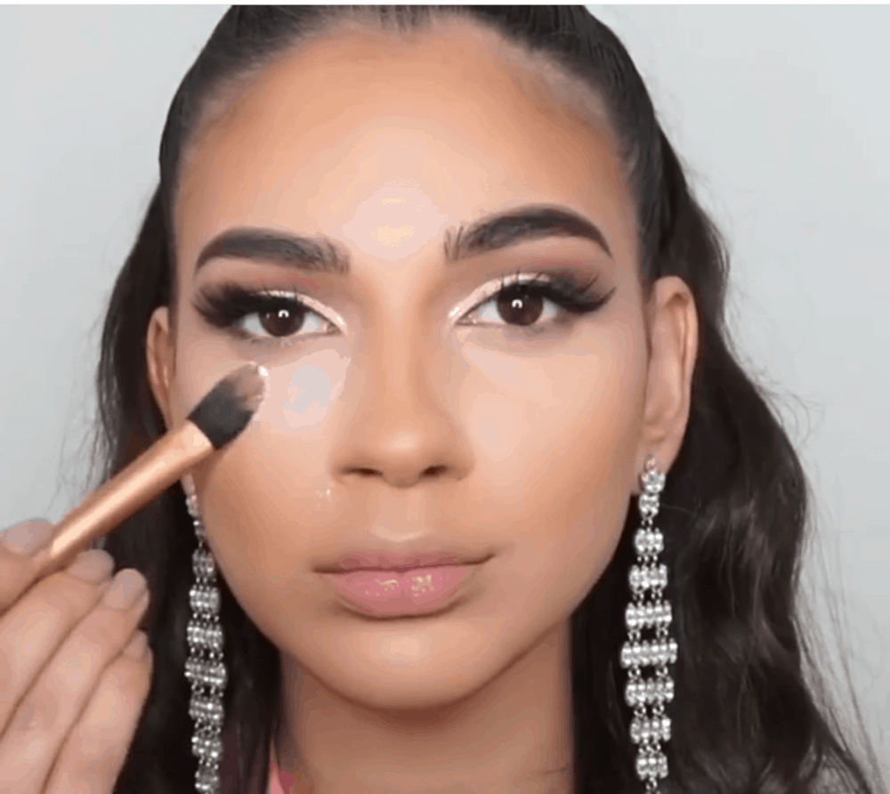 للتمتع بلوك جميل ورائع، بعد الإنتهاء من وضع المكياج أنت بحاجة إلى تطبيق لمسة من الهايلايتر على عضمة العين وفي الزاوية.