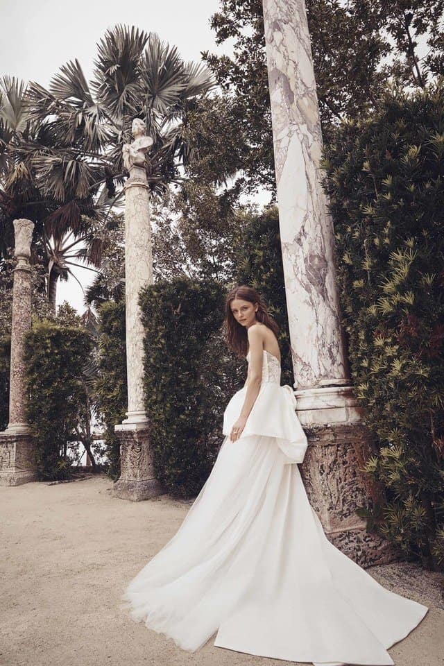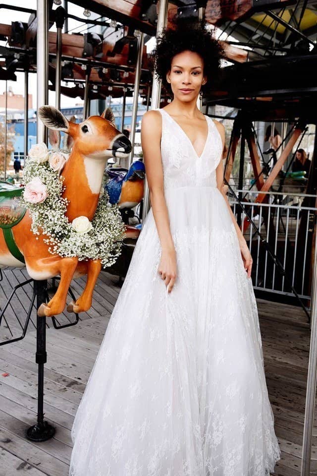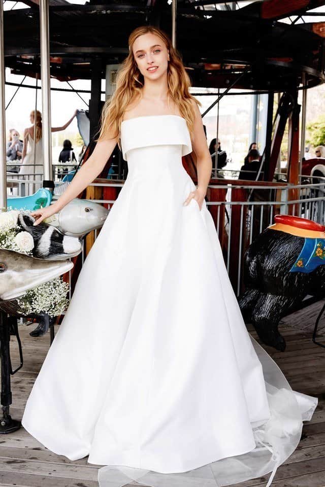 من الموديلات الرائعة والجذابة التي شاهدناها خلال أسبوع الموضة للعروس، ومن التصاميم التي تضيف لك الطول وتخفي الأرداف في الوقت نفسه. من أوسكار دي لارنتا اخترنا لك هذا الفستان المتعدد الطبقات من التل المنفوش.