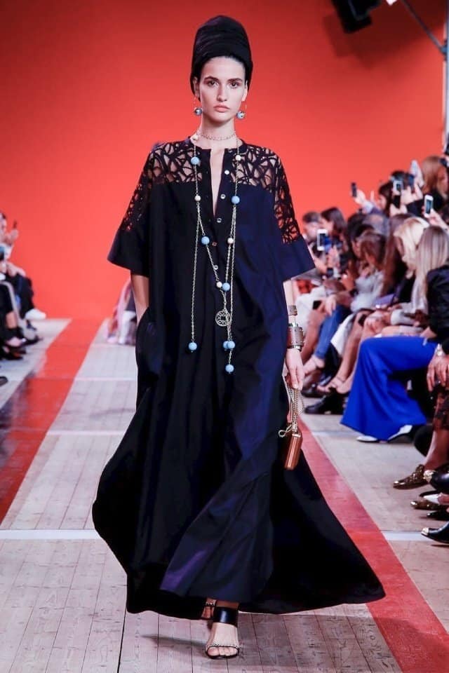 استخدم إيلي صعب أنواع مختلفة من الأقمشة، حيث ستجدين سيدتي الشيفون والستان والدانتيل، كما مزجهم بأقمشة مختلفة لتقديم موديلات جذابة من القفاطين. أما بالنسبة للألوان فقد استخدم الأصفر والأخضر والوردي والأحمر لإرضاء جميع الأذواق.