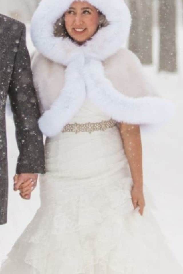 إذا قررت إقامة حفل زفافك في فصل الشتاء، يمكنك إضافة بعض اللمسات التي تناسب الأجواء الباردة، مثل ارتداء الفرو أو البوليرو، حتى تتمكني من إضافة لمسة من الفخامة والأناقة إلى إطلالتك.