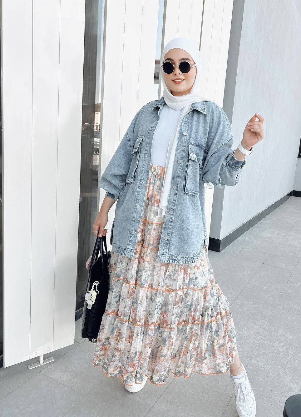 إذا كنت من محبات التنورة الطويلة، يمكنك تنسيقها بشكل جذاب مع الجاكيت.
