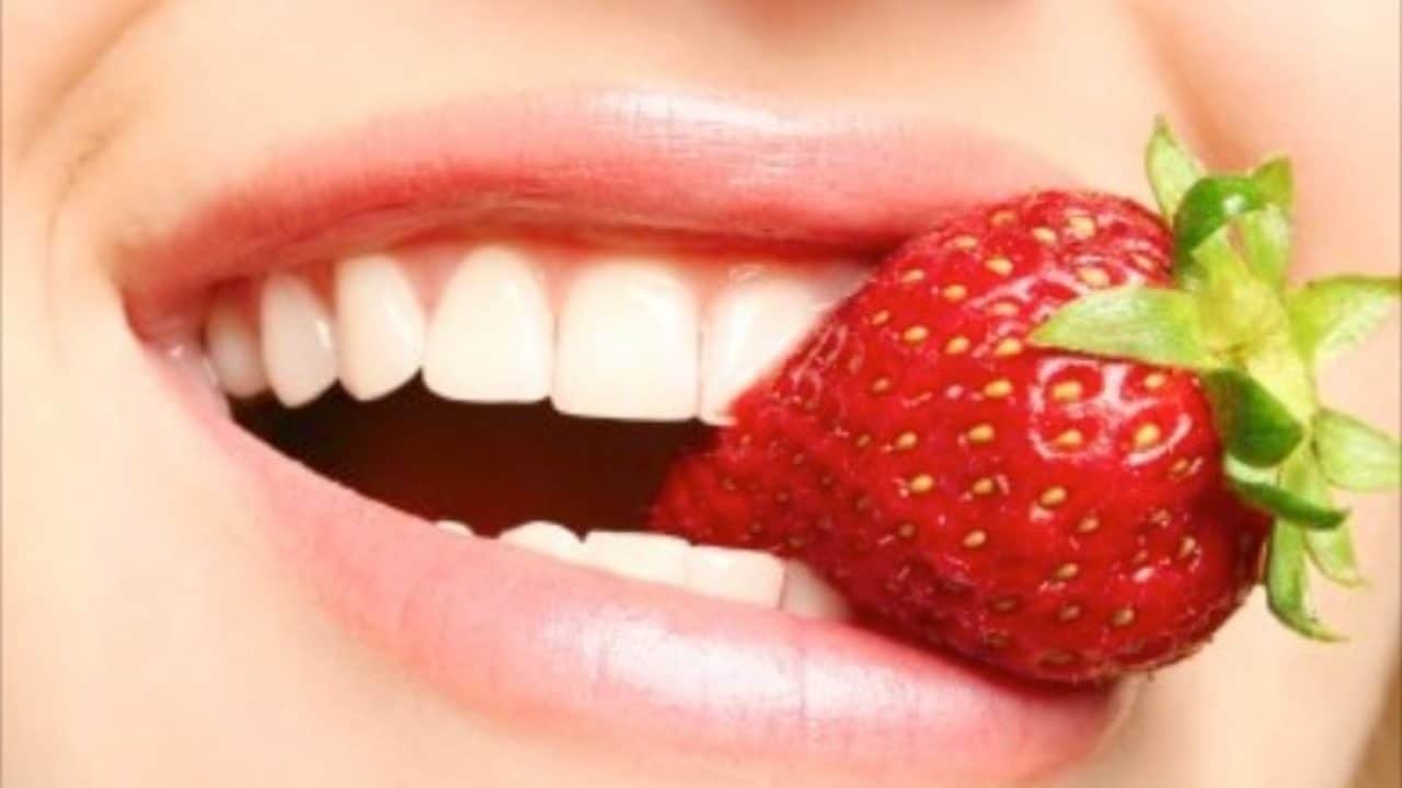 اصنعي مزيجًا من الفراولة المهروسة وبيكربونات الصودا، نطبق المزيج المبيض على الأسنان ونتركه لمدة 20 دقيقة، نشطف الفم بالماء وننتظر 30 دقيقة ثم نغسل الأسنان كالمعتاد، نكرر هذه الوصفة مرة واحدة كل أسبوع أو كل أسبوعين.