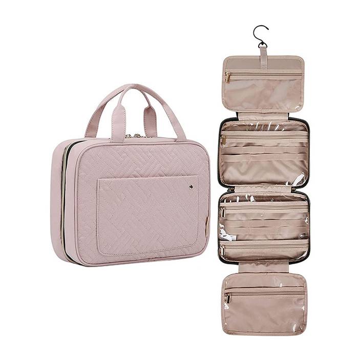 حقيبة واسعة تأتي مع أربعة جيوب منفصلة تتيح لك وضع كل مستحضرات العناية بالبشرة والمكياج أيضا.