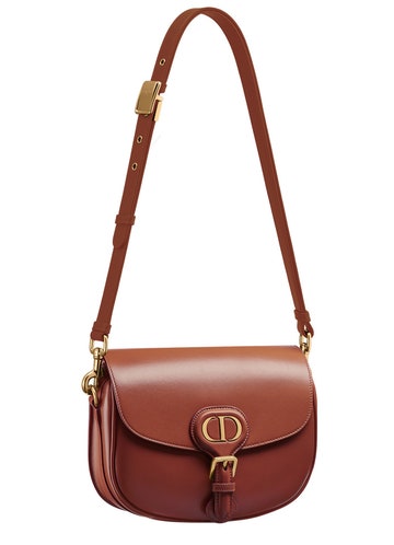 حقيبة يد مصنوعة من الجلد الفاخر باللون البني المحمر مع حزام كتف من علامة ديور.