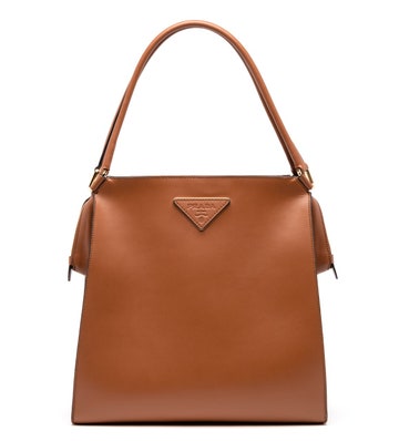 حقيبة يد من الجلد البني الفاخر من علامة برادا