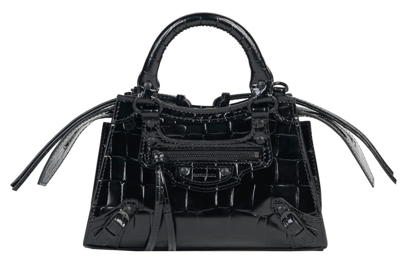 حقيبة يد باللون اللامع بطبعة جلد التسماح من علامة بلانسيقا.
