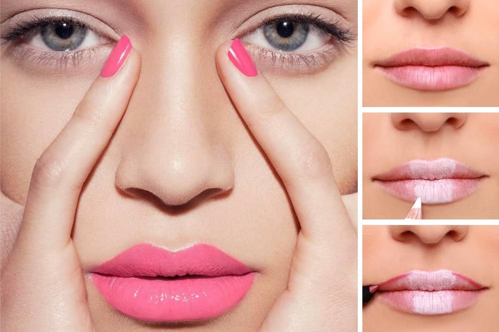 عند تطبيق الكونسيلر أو كريم الأساس على الوجه، لا تنسي الشفاه مع التركيز على حدودها الخارجية الطبيعية. بعد ذلك، ارسمي شفتيك بقلم تحديد أغمق من لون الروج الذي ستطبقينه في ما بعد على أن يكونا متناسقين ثم املئي الفراغات الذي يكون بين الخط الحديث الذي رسمته وحدود شفاهك الطبيعية مع تطبيق أحمر الشفاه لتحصلي على شفتين كبيرتين.