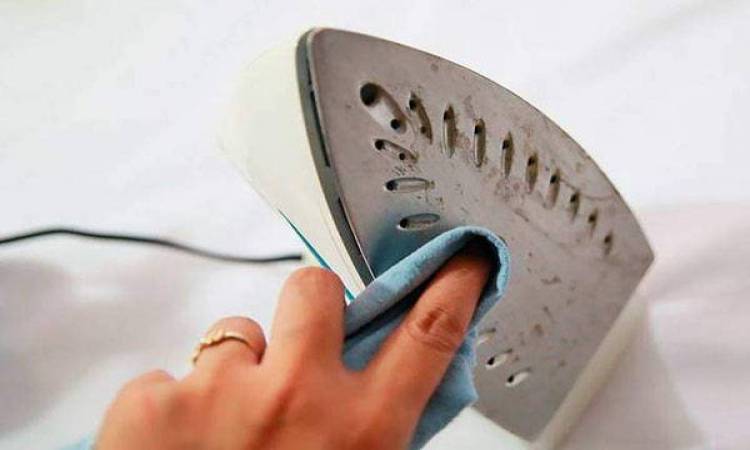 اخلطي القليل من سائل جلي الأطباق مع الماء الدافئ، بللي قطعة قماش بالمزيج وافركي بها سطح المكواة حتى تصبح نظيفة ثم امسحيها مرة أخرى بالماء الفاتر.