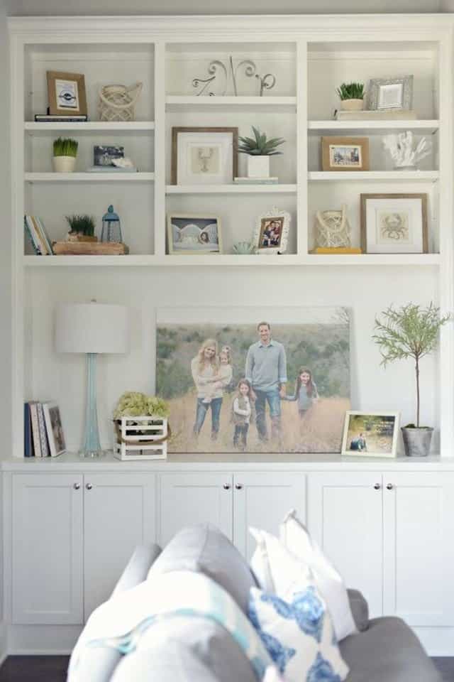 أضيفي بعض الإطارات المميزة التي تحتوي على صور العائلة على أرفف المكتبة.
