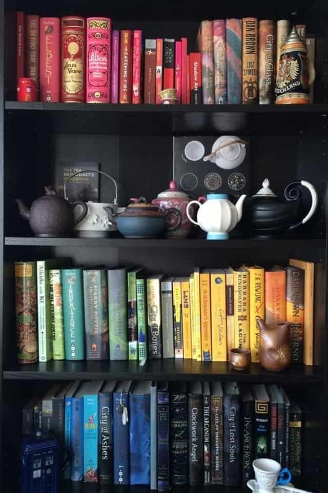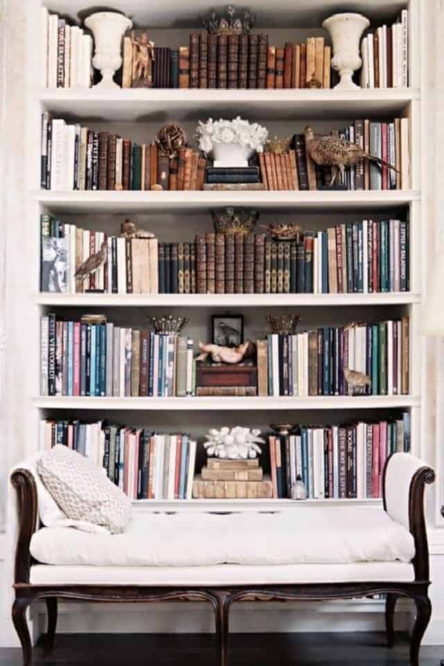 يفضل التنويع في ترتيب الكتب، فمثلاً ضعي بعض الكتب بشكل أفقي وأخرى رأسي
