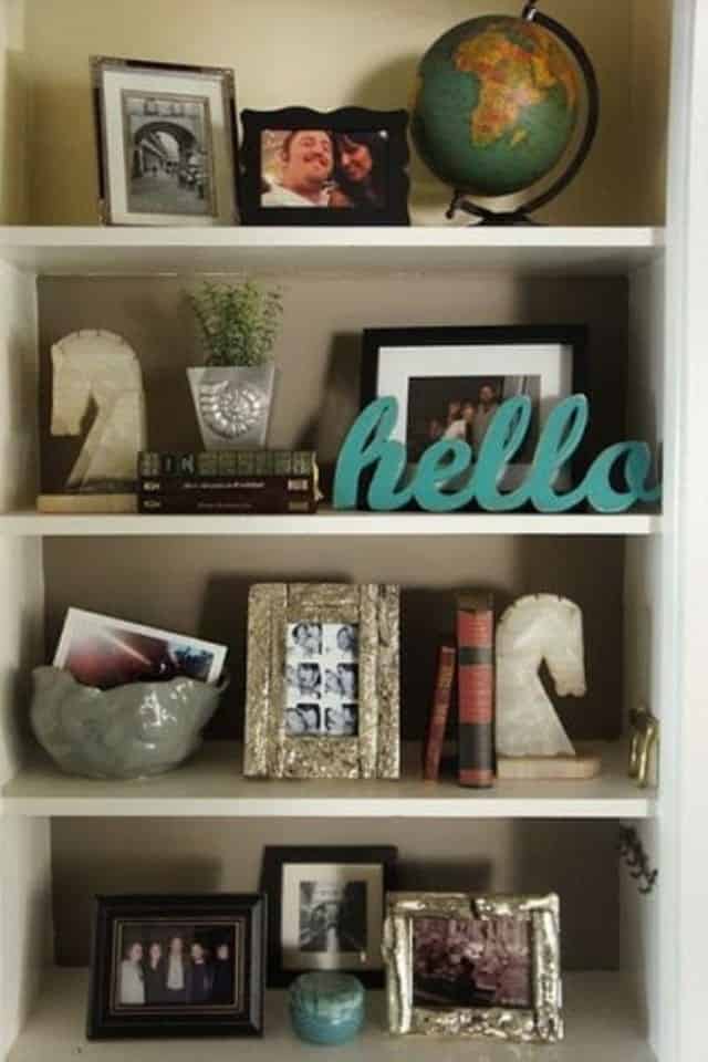 زوقي المكتبة بالإكسسوارات في الأماكن الفارغة، مثل الكرة الأرضية أو التماثيل…