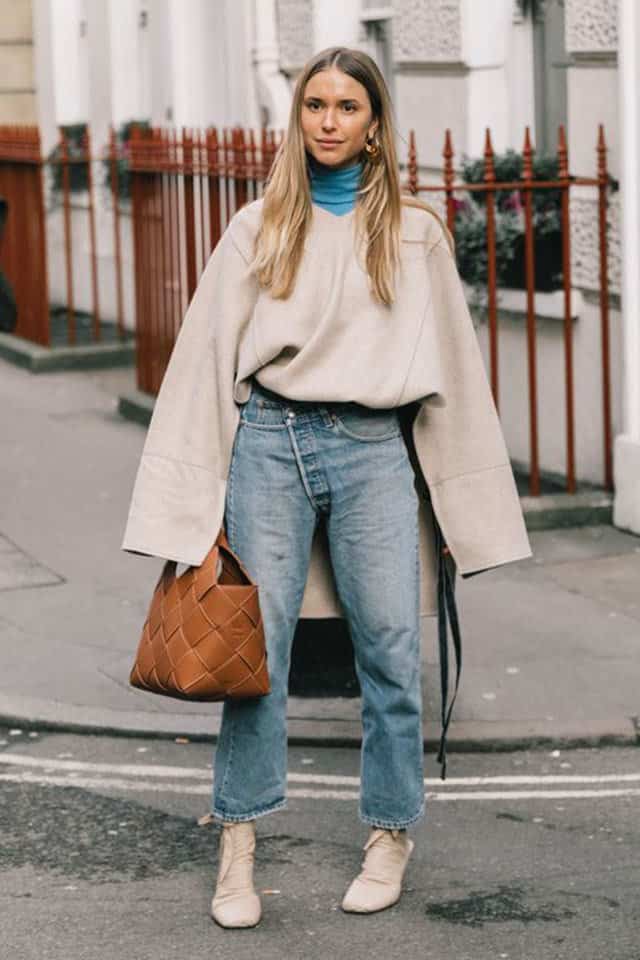 يمكنك سيدتي تنسيق البلوفر الواسع بطرق مختلفة مع الجينز، حيث يمكنك تركه كاملاً بالخارج إذا قمت باختيار بنطلون مع قصة مستقيمة وغير واسع، هذا بالإضافة إلى أنك تستطعين وضع المقدمة أو إحدى الجانبين بالداخل. أفكار مختلفة عليك تجربتها.