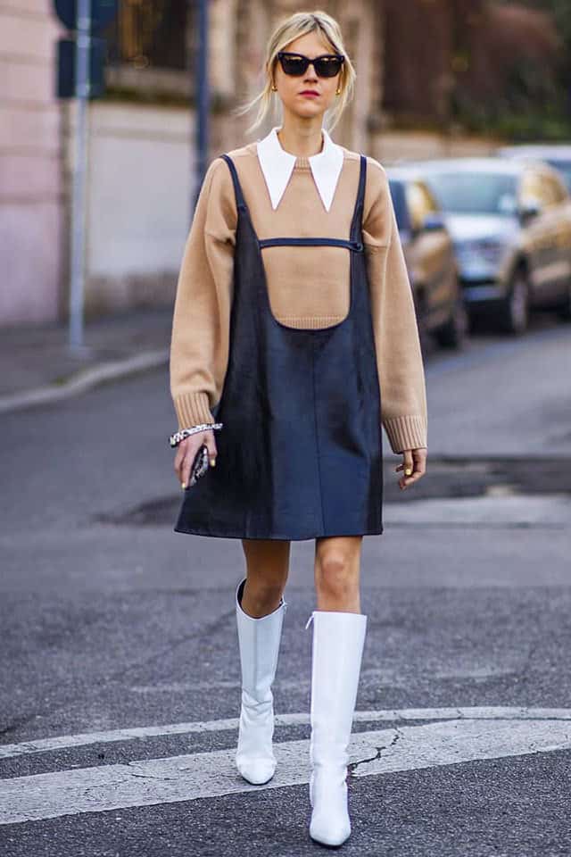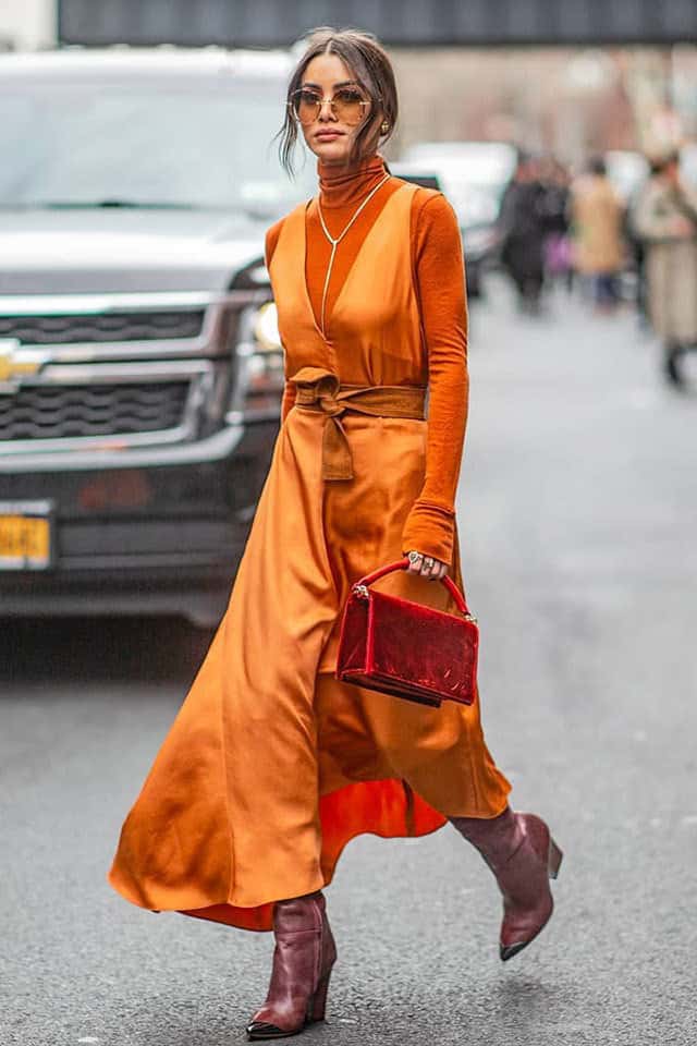 للتمتع بمظهر جذاب وأنيق، تحتاجين سيدتي إلى اختيار فستان منسدل على القوام سواء طويل أو قصير مع بوط يصل إلى الركبة.